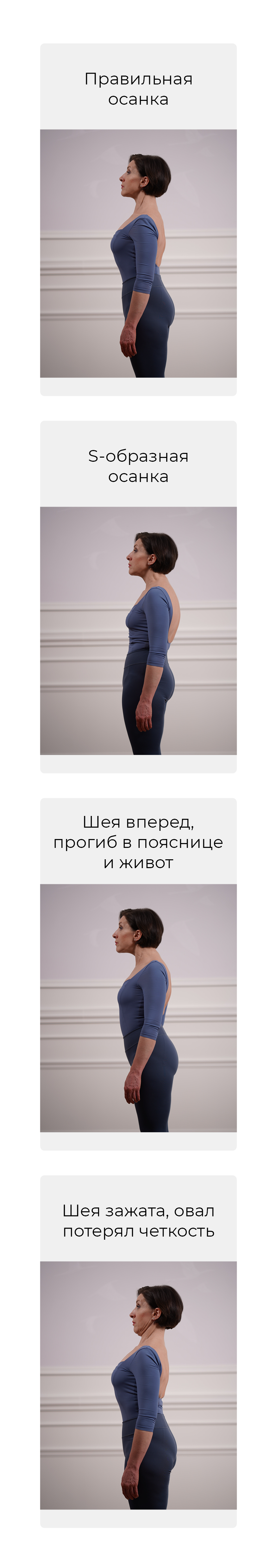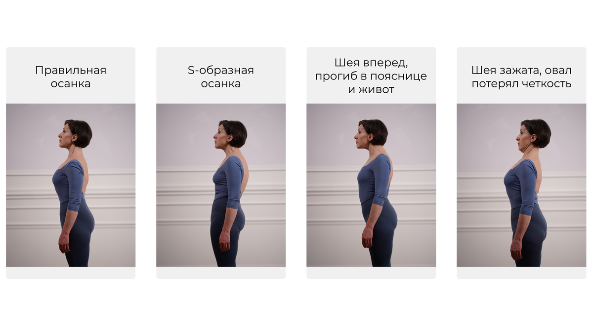 Видите, как сильно осанка влияет на шею, овал лица, живот и грудь?